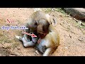 baby monkey crying for milk Little monkeys Maddix plays hard to little Maci by biting special point | Maci hard to move out | |