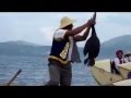 near Dali in China: Fishermen are fishing in the traditional way: They use cormorants. For these birds, being used for fishing is not too funny. When cormorants see fish, they jump into the wates, dive and try to eat the fish. But as their throats are tied up by the fishermen, it is impossible for them to swallow the fished fish. The fishermen just have to pull the fish out of the throat. In order to thank the cormorant, it gets feeded by little fish (that it can swallow).